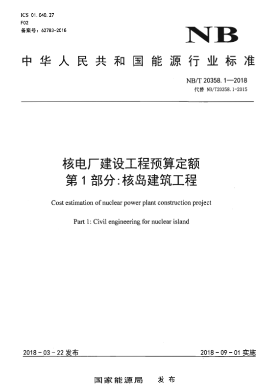 NB/T 20358.1-2018   核電廠建設(shè)工程預(yù)算定額 第1部分:核島建筑工程 299元           1本