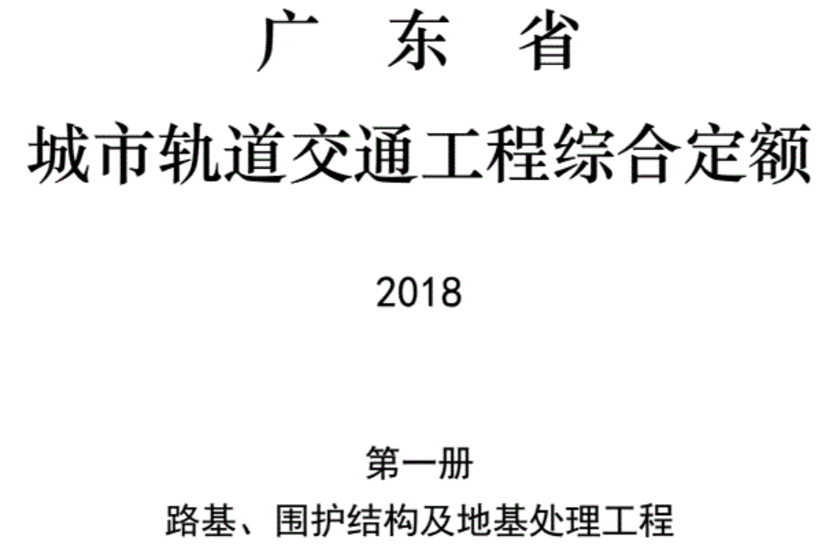 名 稱 】: 《2018年版廣東省 城市軌道地鐵交通工程綜合預算定額18版》