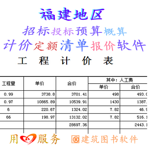 | ·2024版福建省建設(shè)工程造價軟件支持福建建筑工程土建\安裝弱電\裝飾裝修\市政園林\房屋修繕\仿古\地鐵軌道\抗震加固預(yù)算概算定額 優(yōu)惠價:450 |