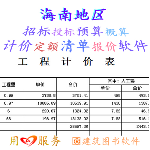 | ·2024版海南省建設(shè)工程造價(jià)軟件支持海南建筑工程土建\安裝弱電\裝飾裝修\市政園林\房屋修繕\仿古\地鐵軌道\抗震加固預(yù)算概算定額 優(yōu)惠價(jià):450 |