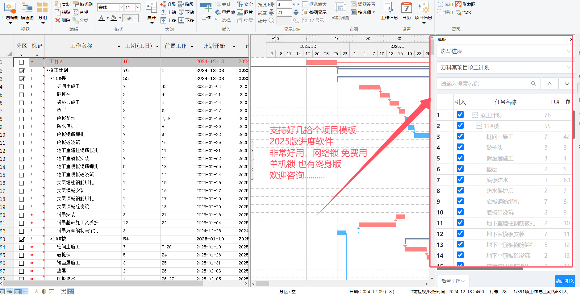 市政高速公路地鐵房屋建筑裝飾安裝園林景觀工程進(jìn)度計(jì)劃編制軟件